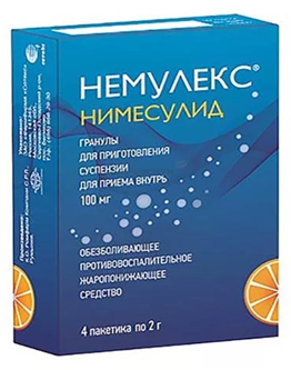 Один пакетик препарата Немулекс содержит 100 мг нимесулида.