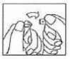 Расположить кончик ампулы точкой кверху! Осторожно постукивая пальцем и встряхивая ампулу, дать раствору из кончика ампулы стечь вниз.
