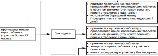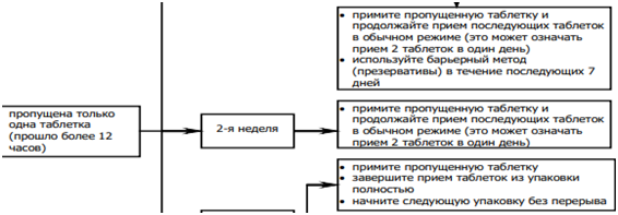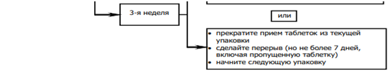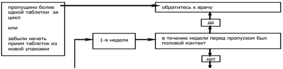 • Пропущена таблетка в первую неделю приёма упаковки и был половой контакт за семь или менее дней до этого;